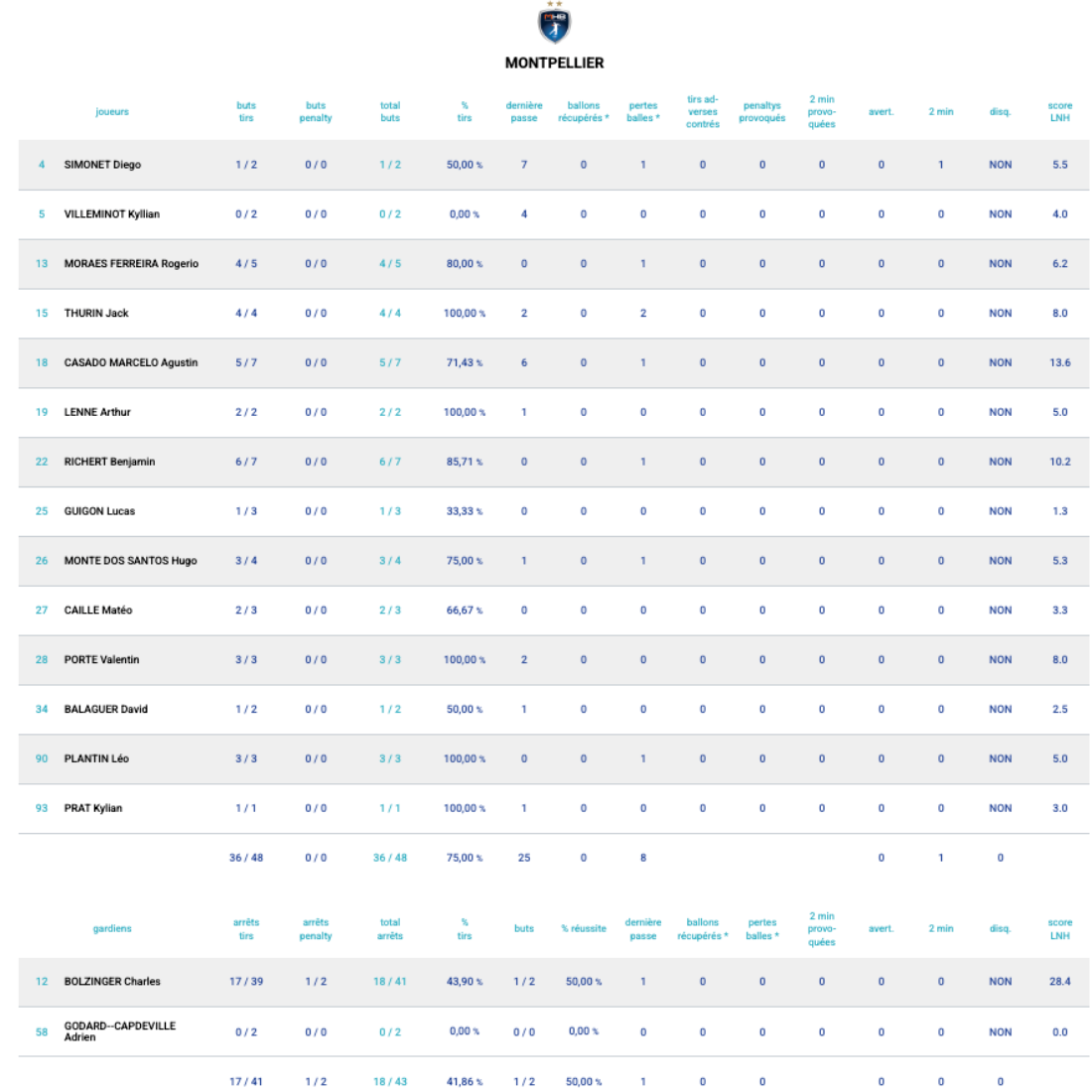 Très bon au match aller comme au retour, Burzak écope d'un carton rouge pour une charge au visage de Casado (40e). Érick Mathé s'essaie au jeu à double pivot avec Lenne et Moraes. Montpellier déroule jusqu'au bout.