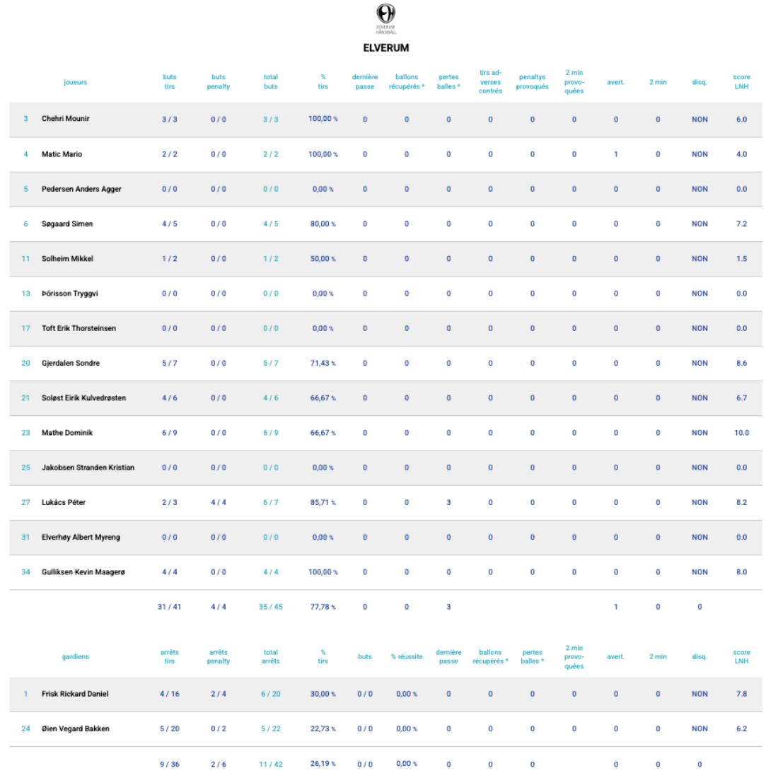 Les statistiques d'Elverum
