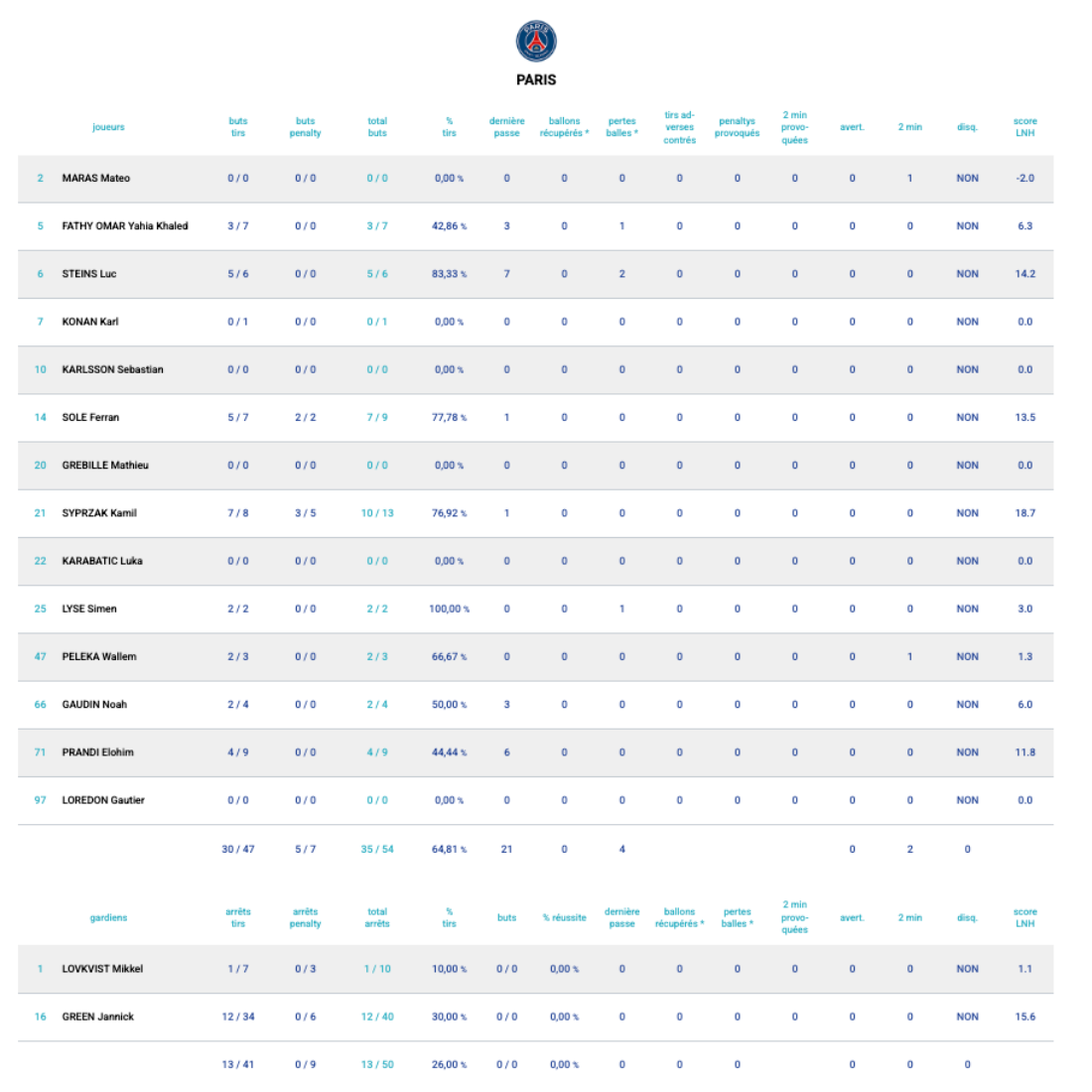 Les statistiques du PSG